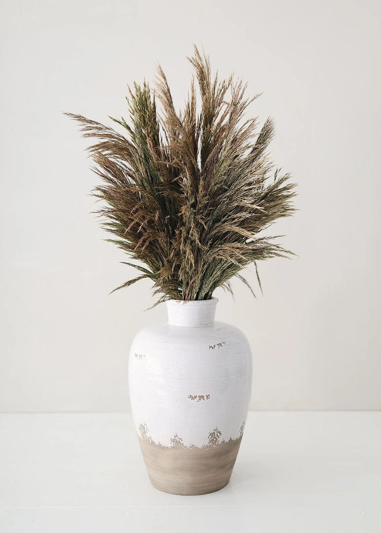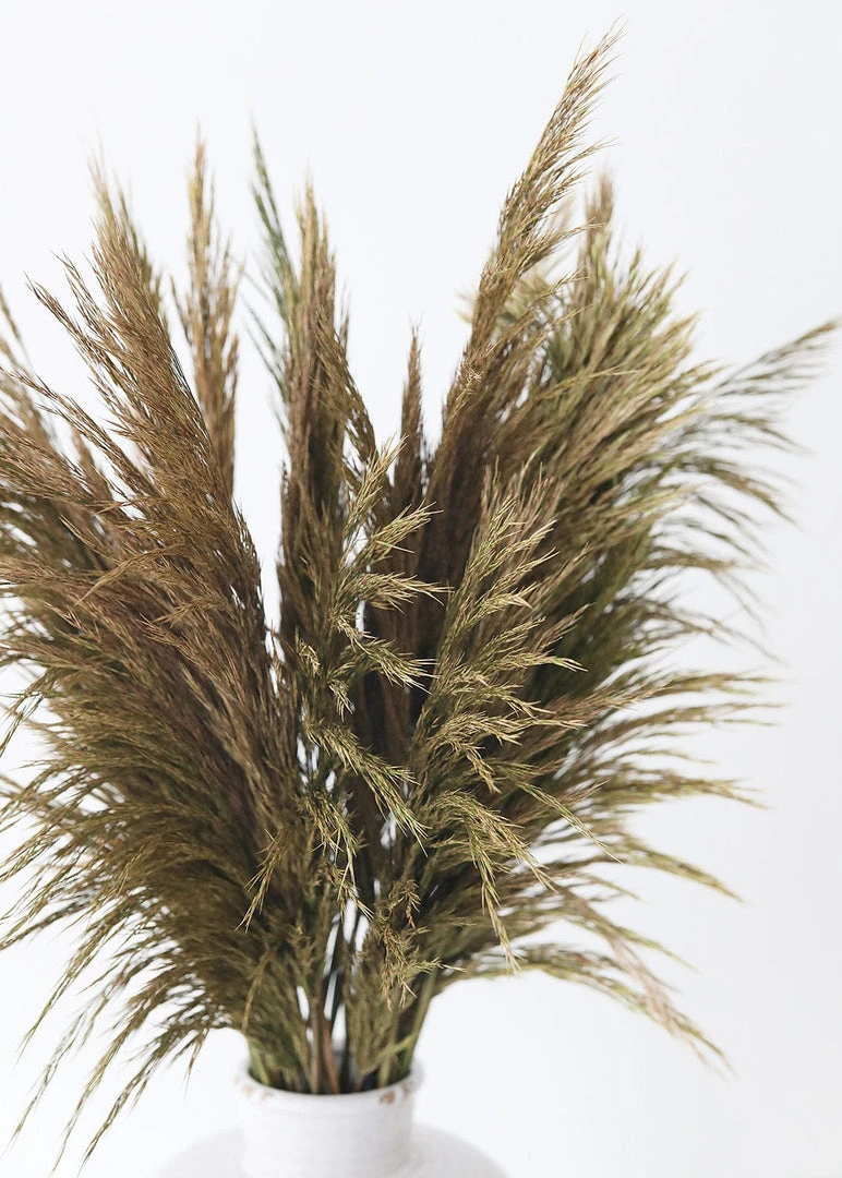Looking for tall, dried grasses? Your floor vase decor calls for this striking, natural green preserved plume reed ornamental feather grass. Simply style it to get on board with the trending minimalist approach to decorating.