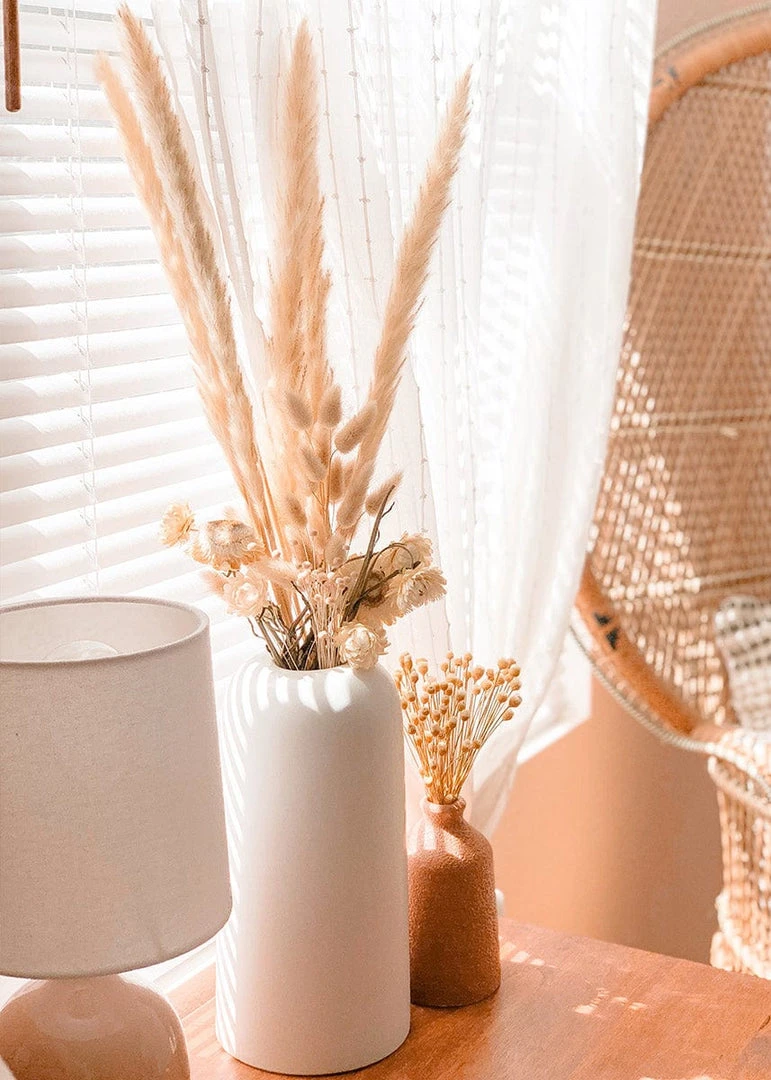 This dried natural tan pampas grass is the perfect addition to any home decor or floral design to welcome nature’s simple beauty inside. Add these thin pampas stems to your favorite tall vase or sprinkle them into a flower bouquet for an effortlessly chic look! Product may shed. Gently shake to remove any loose pieces.