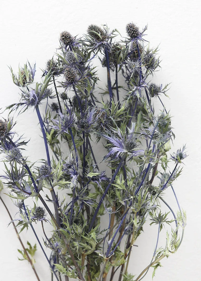 Elevate your vase styling with naturally beautiful botanicals. This fresh from the field blue star sea holly thistle was grown, harvested, and dried on a solar-powered farm in the Netherlands.