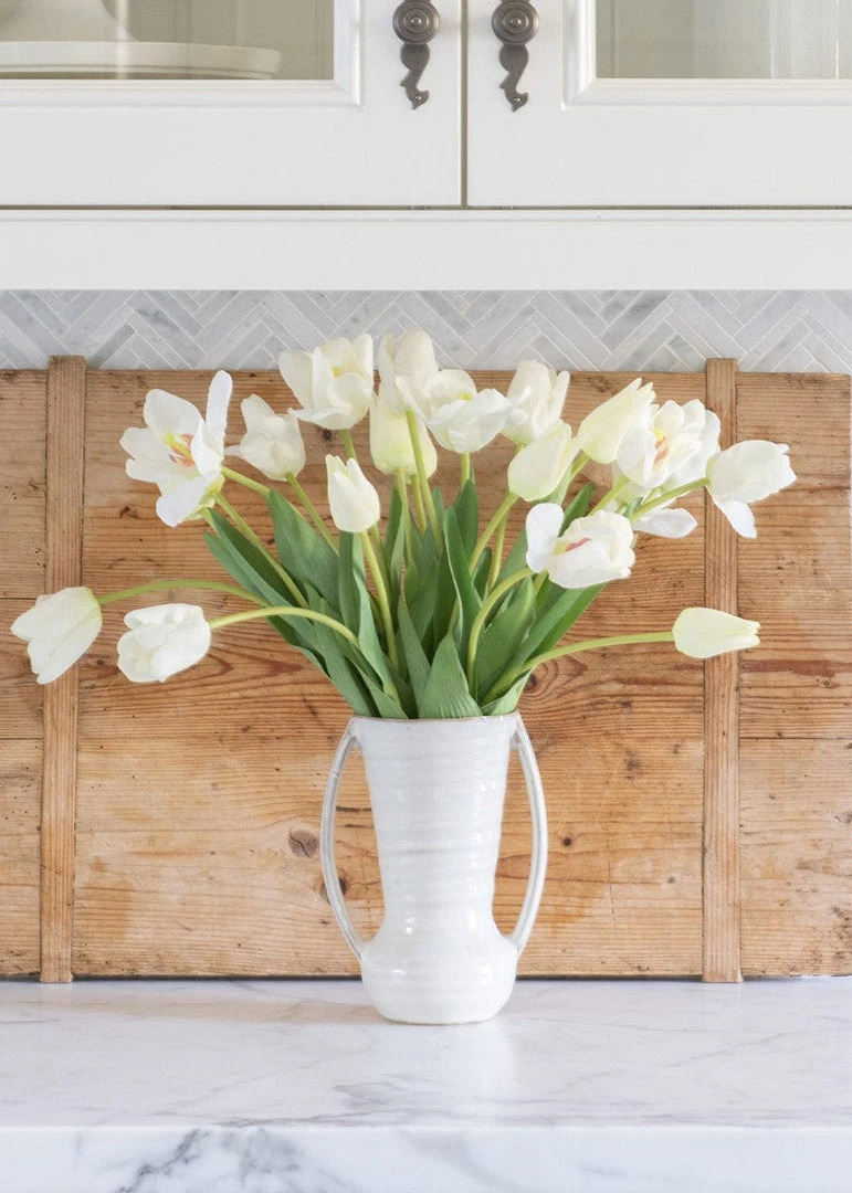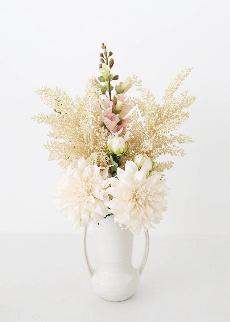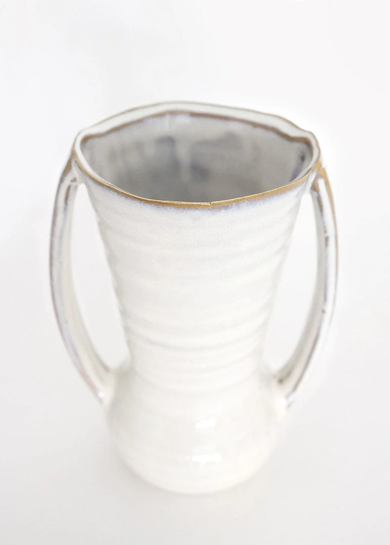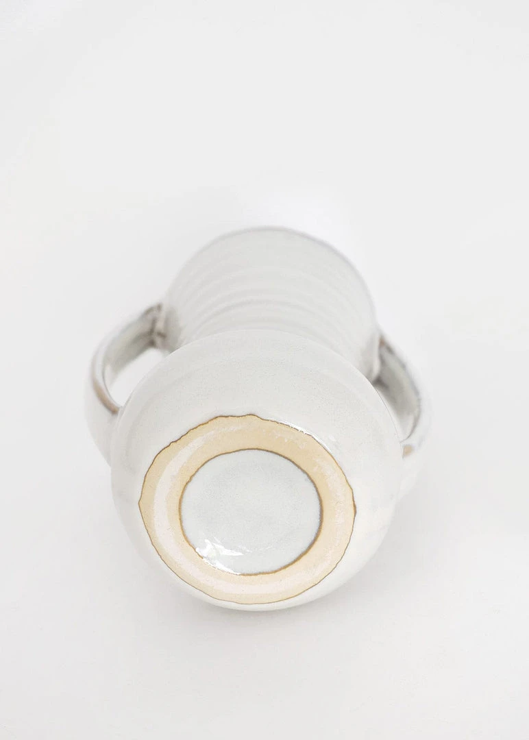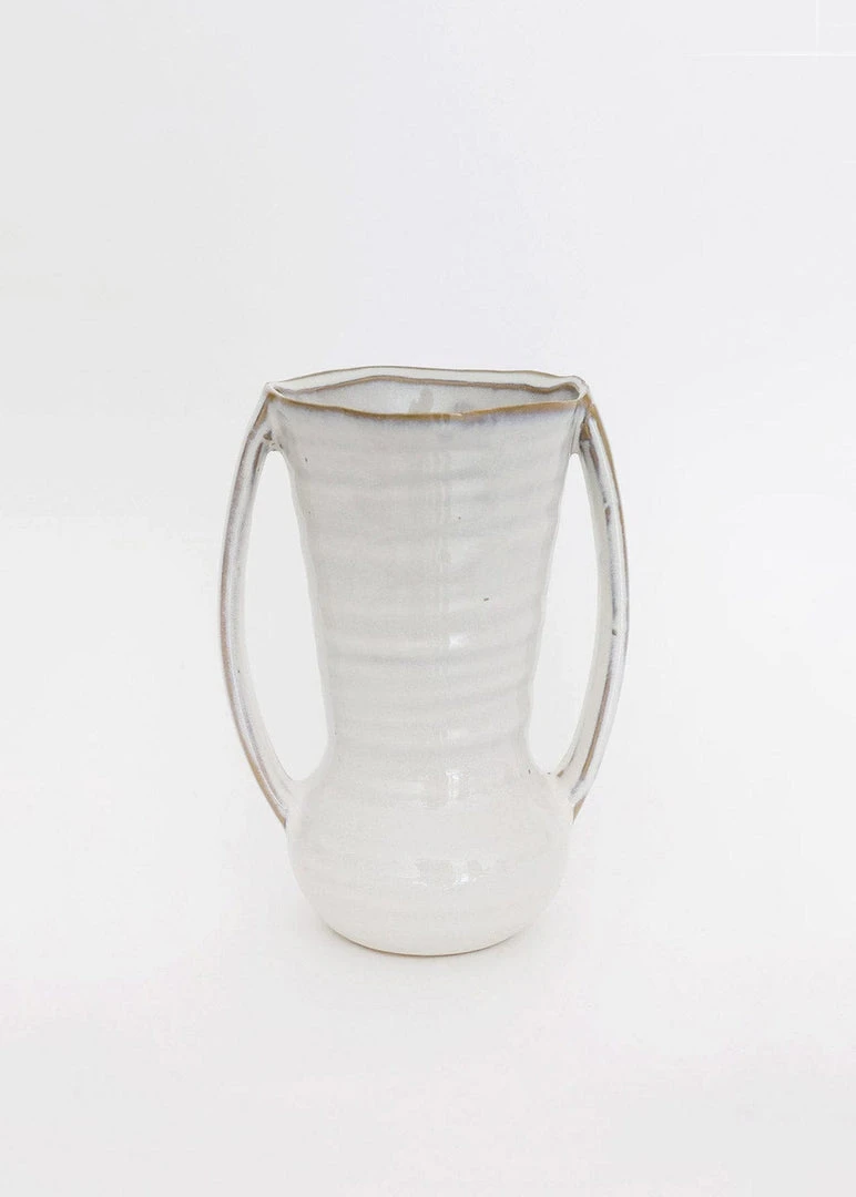 Create a vintage floral arrangement for your home with this Amphora-shaped flower vase from the Zara Collection. This lovely curved ceramic vase with handles is glossy vanilla cream with a distressed look.