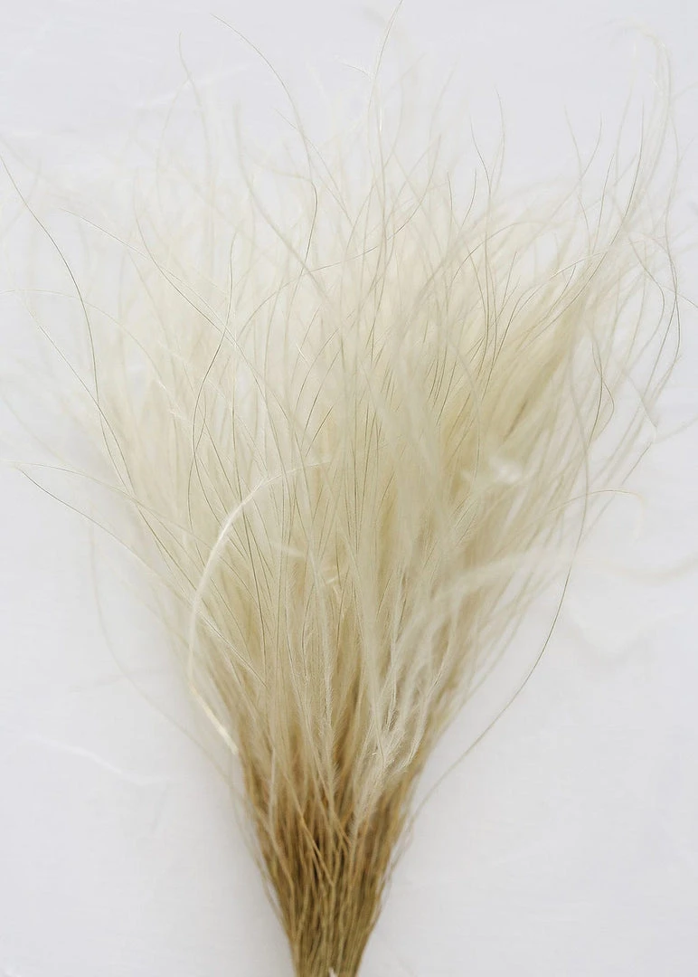 Incorporate the feeling of nature into your home decor styling with natural grasses. This off-white dried ornamental feather grass looks beautiful in a vase or a floral arrangement to add airiness and dimension.