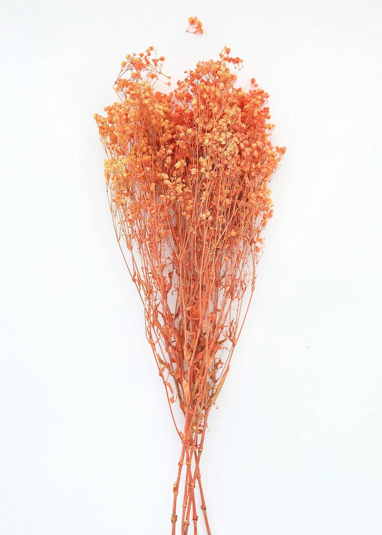 Find gypsophila dried flowers, like this bright and gorgeous orange preserved baby’s breath gyp. From bud vases to wedding flower bouquets, these everlasting blooms are a must to give your designs perfect pops of color.