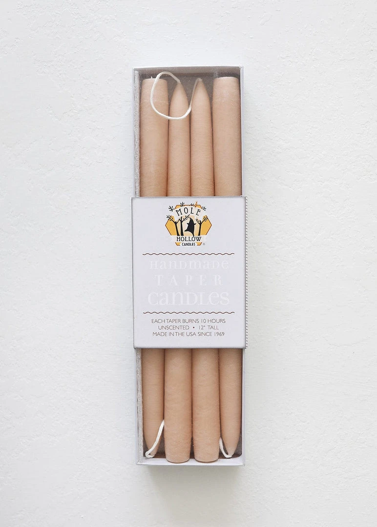 Beautiful, neutral ivory color makes these unscented and hand-dipped taper candles a favorite to add a classic look to any design. You can easily incorporate them into everyday home decor, dinner parties, and wedding centerpieces.