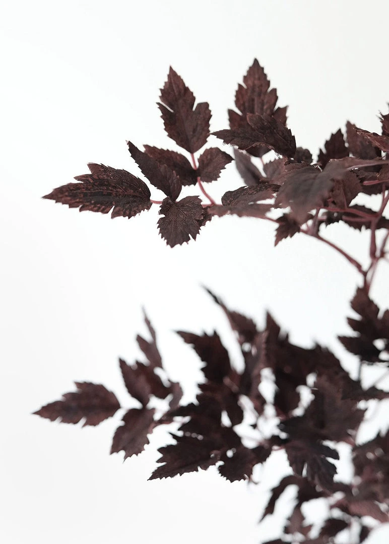 Bring the feeling of a crisp fall day into your home with these artificial Cimicifuga Ramosa leaves. The rich, deep plum purple hue makes this Hillside Black Beauty foliage a striking addition to your autumn wreaths and faux flower arrangements.