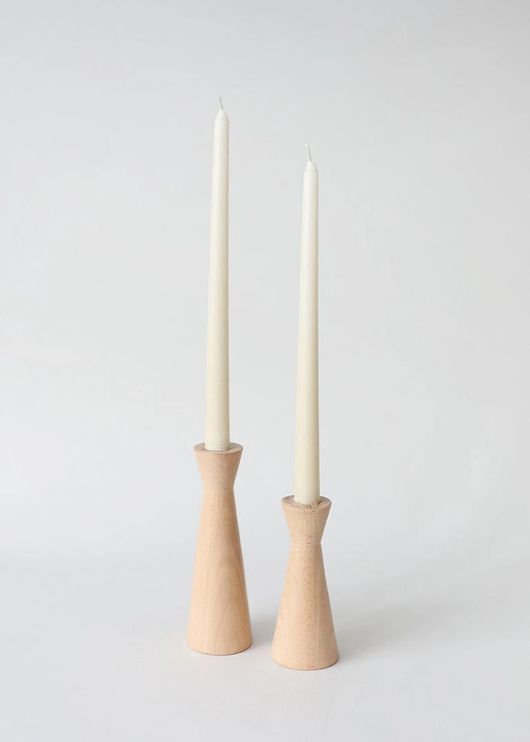 Find table decorations that work nicely for home accents and wedding centerpieces alike, like these wood candle holders that are perfect for taper candles. The simple but unique shape elevates the modern look you are creating. Use floral tack adhesive to secure taper candles in holders, when needed.