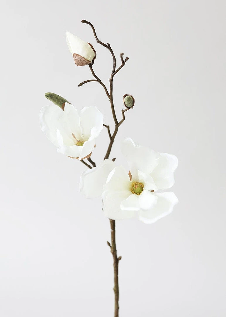 Complete your Spring home decor with this artificial magnolia branch in cream white. Add to any floral arrangement or simple drop in a vase on your coffee table to bring Spring in!Â