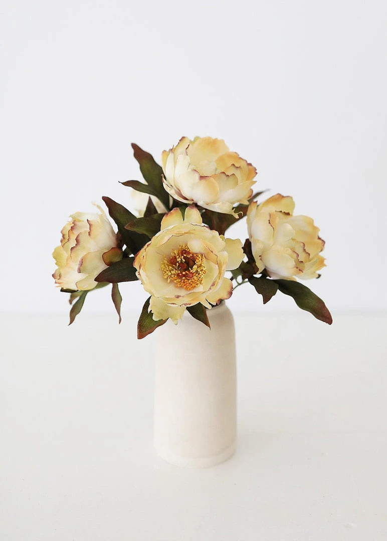 Artificial flowers in neutrals are found in this lovely peony stem in a mix of ivory and vanilla. Style these fake peonies into your fall floral arrangements to create a dramatic contrast between subtle and bold hues.