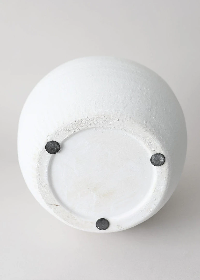Create a stunning Spring floral arrangement with this flat white large concrete konos vase. Simply add a few artificial branches or dried grasses to create a simple centerpiece for your home decor. As seen styled with our fake olive branches and Norfolk stems.
